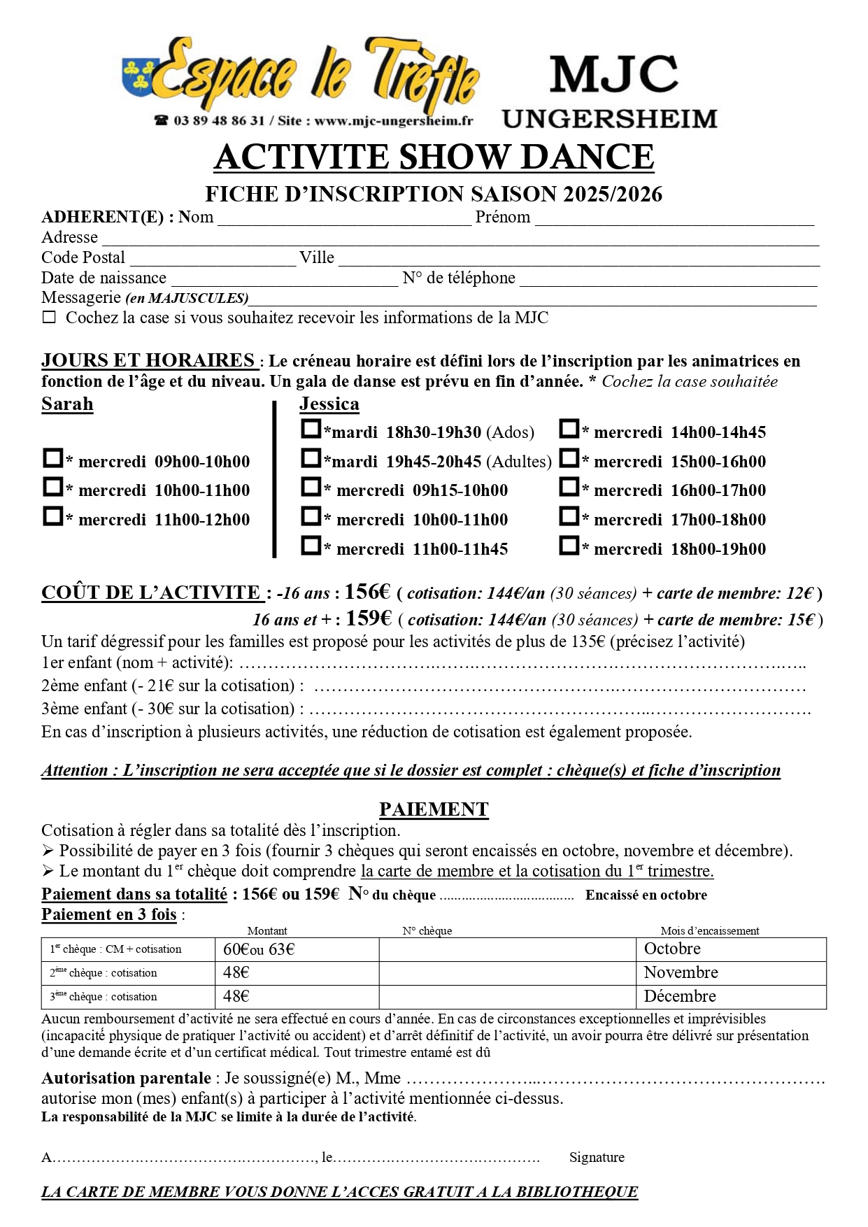 Danser est un moyen pour s’exprimer… Ce cours mélange de divers styles de danses qui font référence aux danses urbaines (hip hop, danse moderne mais aussi danse contemporaine, …). Tout au long de l’année, les élèves créeront un show sous forme de comédie musicale. Ils travailleront sur le thème du gala ainsi que la mise en scène. Les groupes seront formés par niveau et selon l’âge.